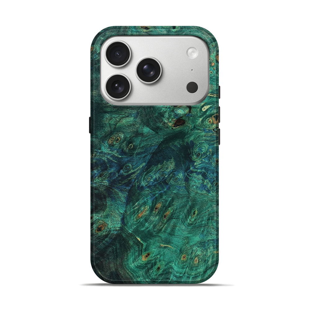 Our Live Edge cases are made from an amazing combination of stabilized wood burl and colored resin. Our stabilization process hardens the wood to protect against cracks and breaks. We do every step of the process at our shop in Northern Indiana. Perfectly fits the iPhone 17 Pro.