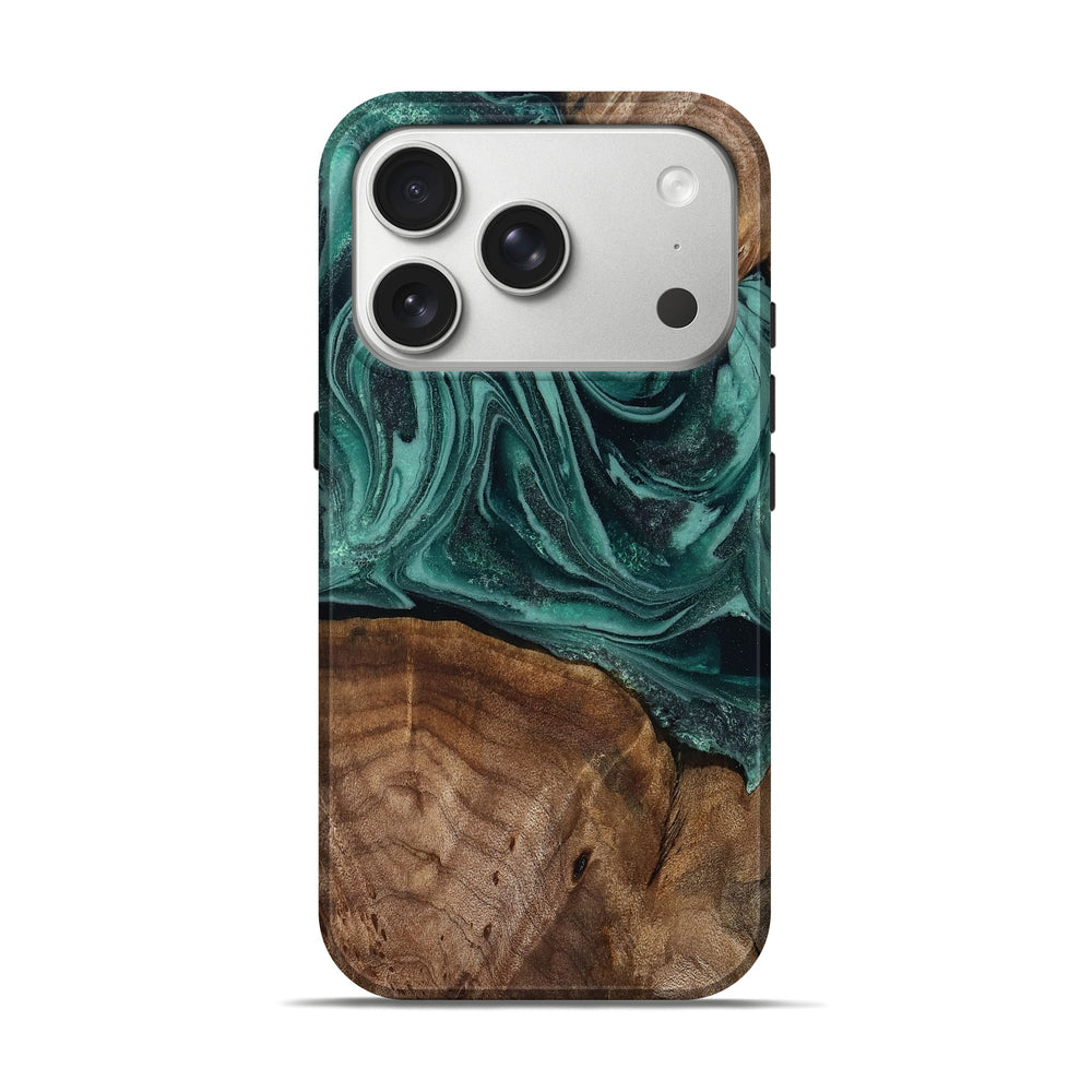 Our Live Edge cases are made from an amazing combination of stabilized wood burl and colored resin. Our stabilization process hardens the wood to protect against cracks and breaks. We do every step of the process at our shop in Northern Indiana. Perfectly fits the iPhone 17 Pro.