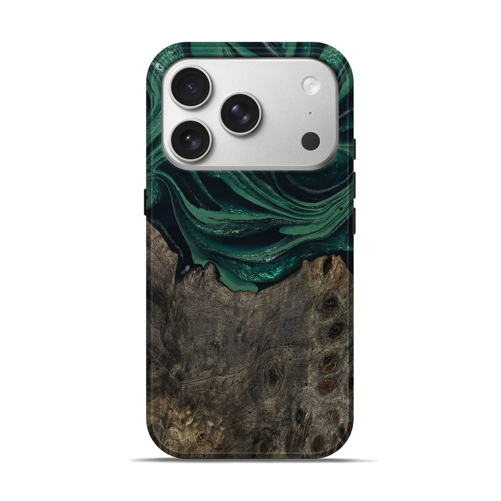 Our Live Edge cases are made from an amazing combination of stabilized wood burl and colored resin. Our stabilization process hardens the wood to protect against cracks and breaks. We do every step of the process at our shop in Northern Indiana. Perfectly fits the iPhone 17 Pro.