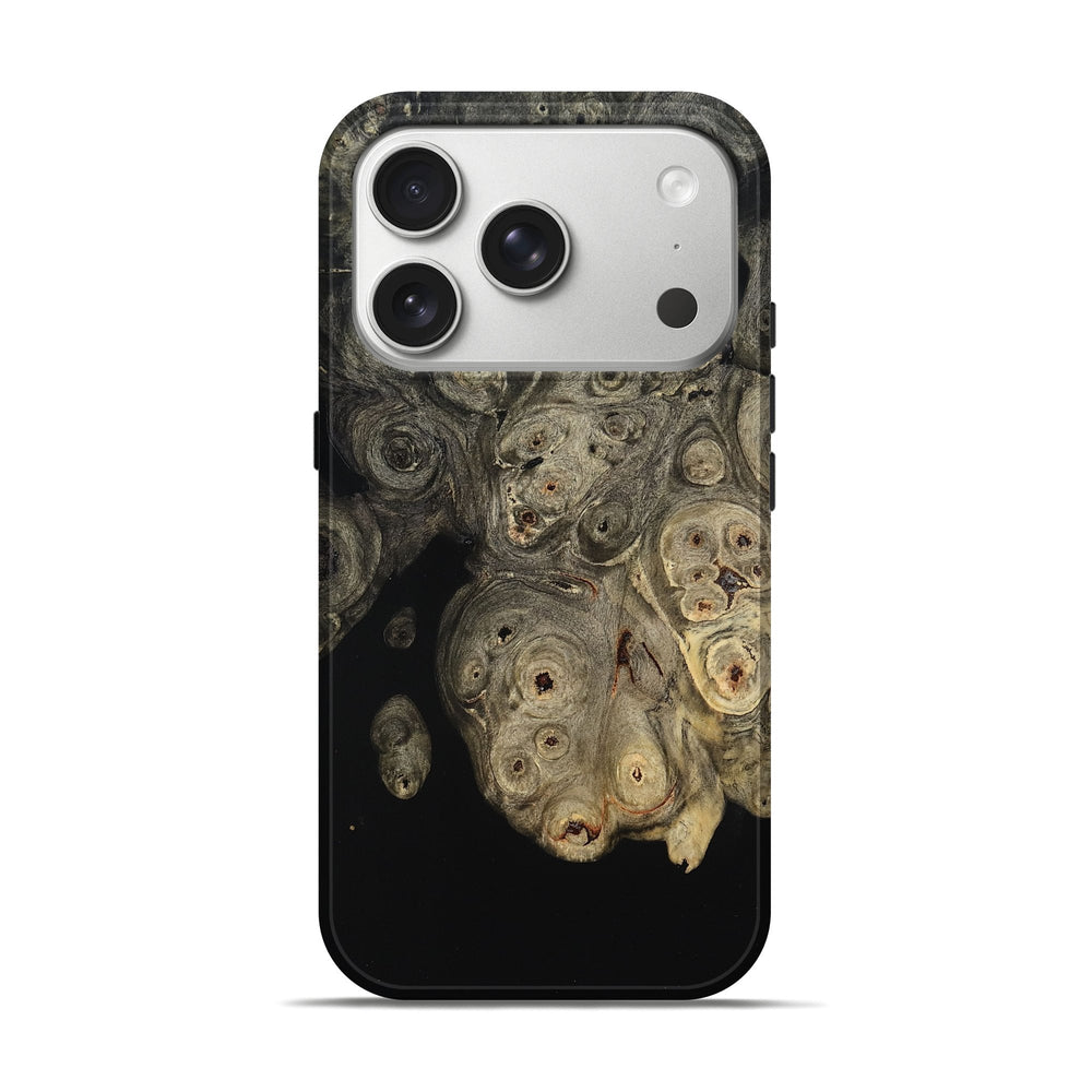 Our Live Edge cases are made from an amazing combination of stabilized wood burl and colored resin. Our stabilization process hardens the wood to protect against cracks and breaks. We do every step of the process at our shop in Northern Indiana. Perfectly fits the iPhone 17 Pro.