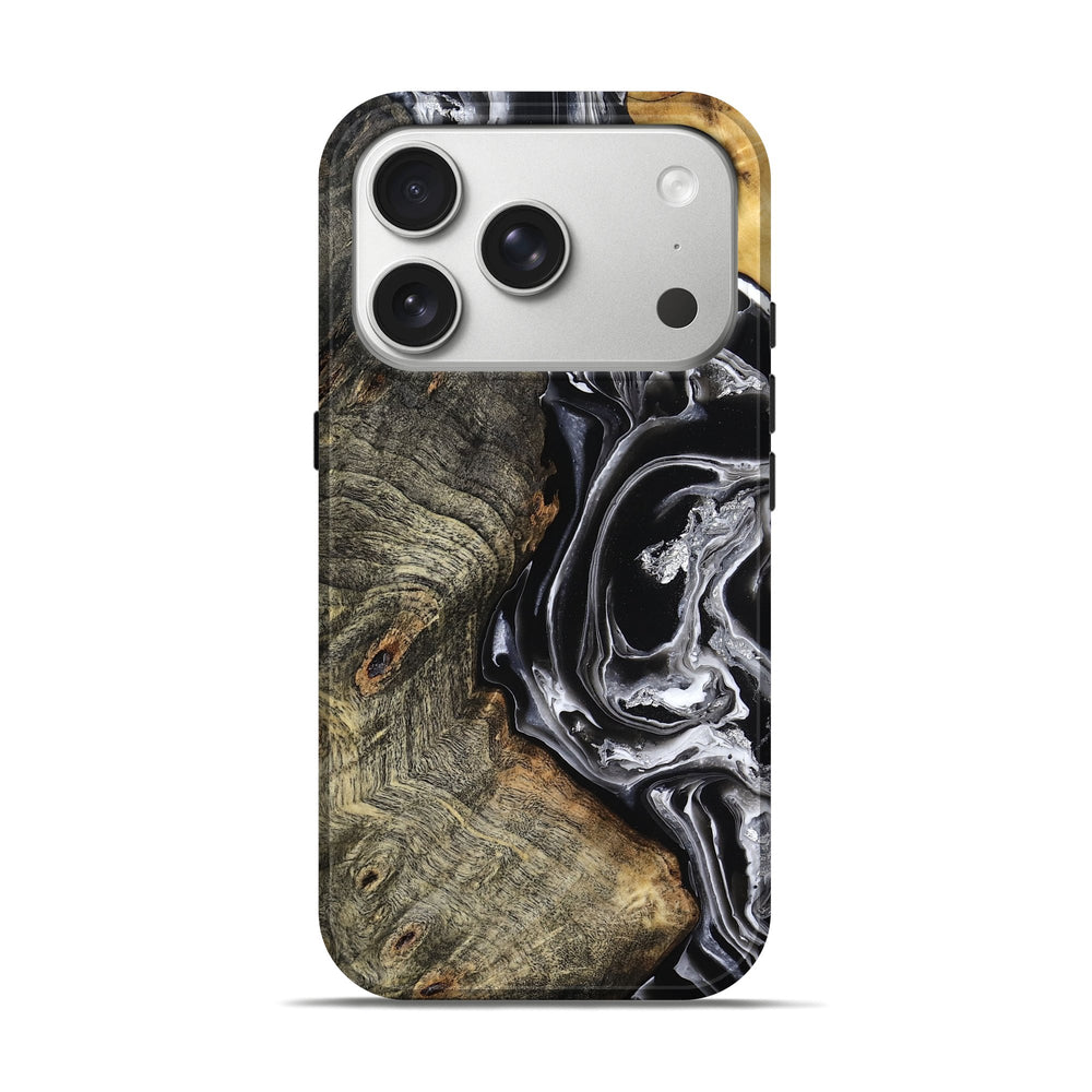 Our Live Edge cases are made from an amazing combination of stabilized wood burl and colored resin. Our stabilization process hardens the wood to protect against cracks and breaks. We do every step of the process at our shop in Northern Indiana. Perfectly fits the iPhone 17 Pro.