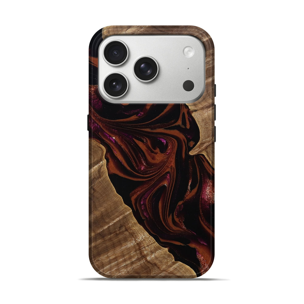 Our Live Edge cases are made from an amazing combination of stabilized wood burl and colored resin. Our stabilization process hardens the wood to protect against cracks and breaks. We do every step of the process at our shop in Northern Indiana. Perfectly fits the iPhone 17 Pro.
