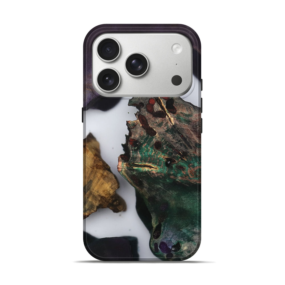 Our Live Edge cases are made from an amazing combination of stabilized wood burl and colored resin. Our stabilization process hardens the wood to protect against cracks and breaks. We do every step of the process at our shop in Northern Indiana. Perfectly fits the iPhone 17 Pro.