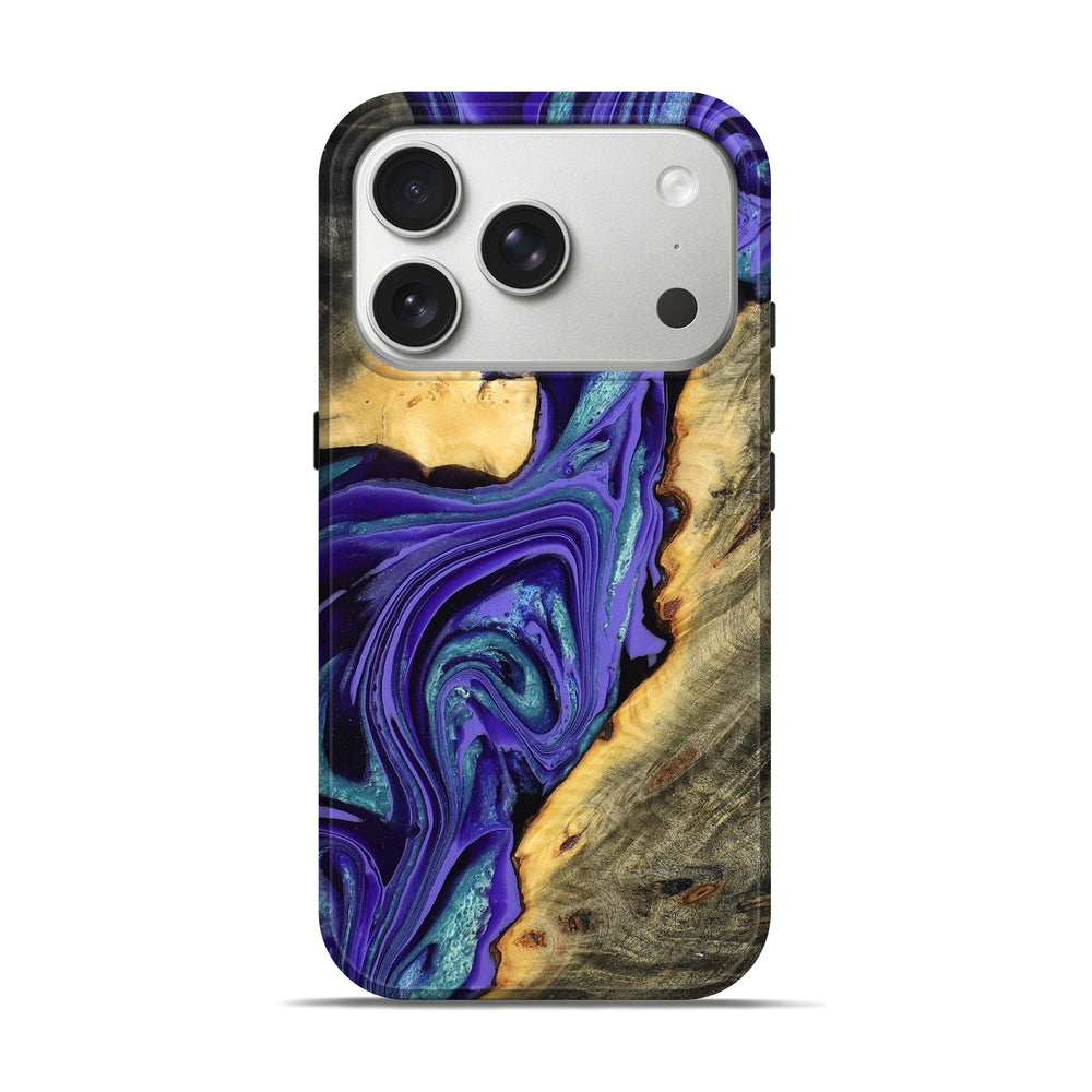 Our Live Edge cases are made from an amazing combination of stabilized wood burl and colored resin. Our stabilization process hardens the wood to protect against cracks and breaks. We do every step of the process at our shop in Northern Indiana. Perfectly fits the iPhone 17 Pro.