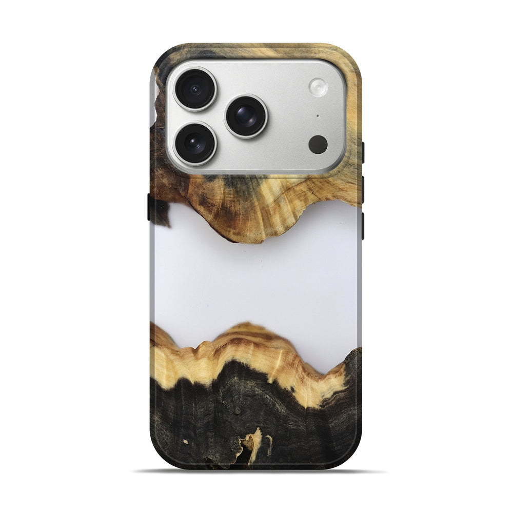 Our Live Edge cases are made from an amazing combination of stabilized wood burl and colored resin. Our stabilization process hardens the wood to protect against cracks and breaks. We do every step of the process at our shop in Northern Indiana. Perfectly fits the iPhone 17 Pro.