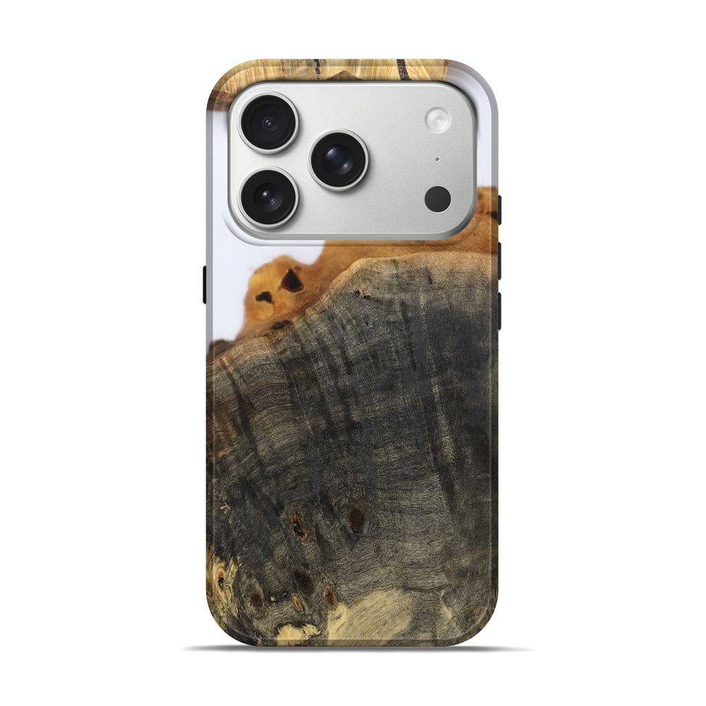 Our Live Edge cases are made from an amazing combination of stabilized wood burl and colored resin. Our stabilization process hardens the wood to protect against cracks and breaks. We do every step of the process at our shop in Northern Indiana. Perfectly fits the iPhone 17 Pro.