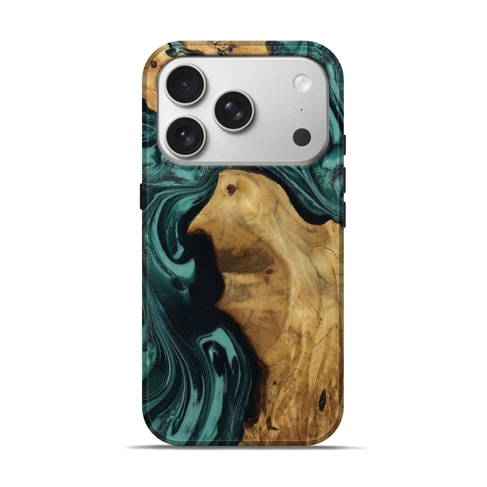 Our Live Edge cases are made from an amazing combination of stabilized wood burl and colored resin. Our stabilization process hardens the wood to protect against cracks and breaks. We do every step of the process at our shop in Northern Indiana. Perfectly fits the iPhone 17 Pro.