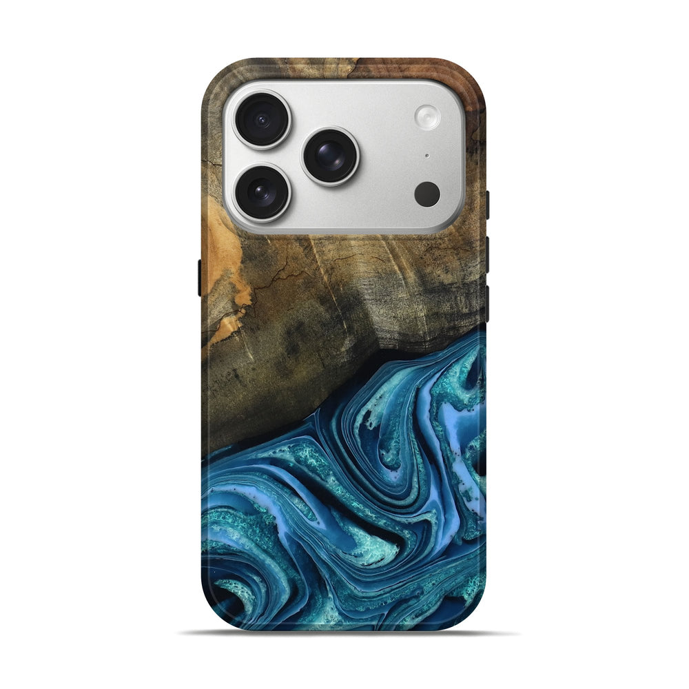 Our Live Edge cases are made from an amazing combination of stabilized wood burl and colored resin. Our stabilization process hardens the wood to protect against cracks and breaks. We do every step of the process at our shop in Northern Indiana. Perfectly fits the iPhone 17 Pro.