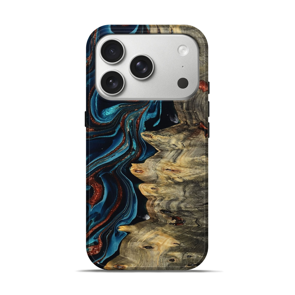 Our Live Edge cases are made from an amazing combination of stabilized wood burl and colored resin. Our stabilization process hardens the wood to protect against cracks and breaks. We do every step of the process at our shop in Northern Indiana. Perfectly fits the iPhone 17 Pro.