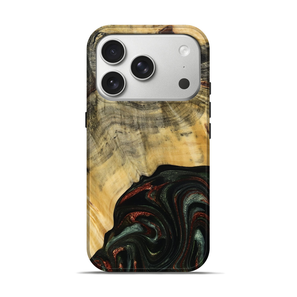 Our Live Edge cases are made from an amazing combination of stabilized wood burl and colored resin. Our stabilization process hardens the wood to protect against cracks and breaks. We do every step of the process at our shop in Northern Indiana. Perfectly fits the iPhone 17 Pro.