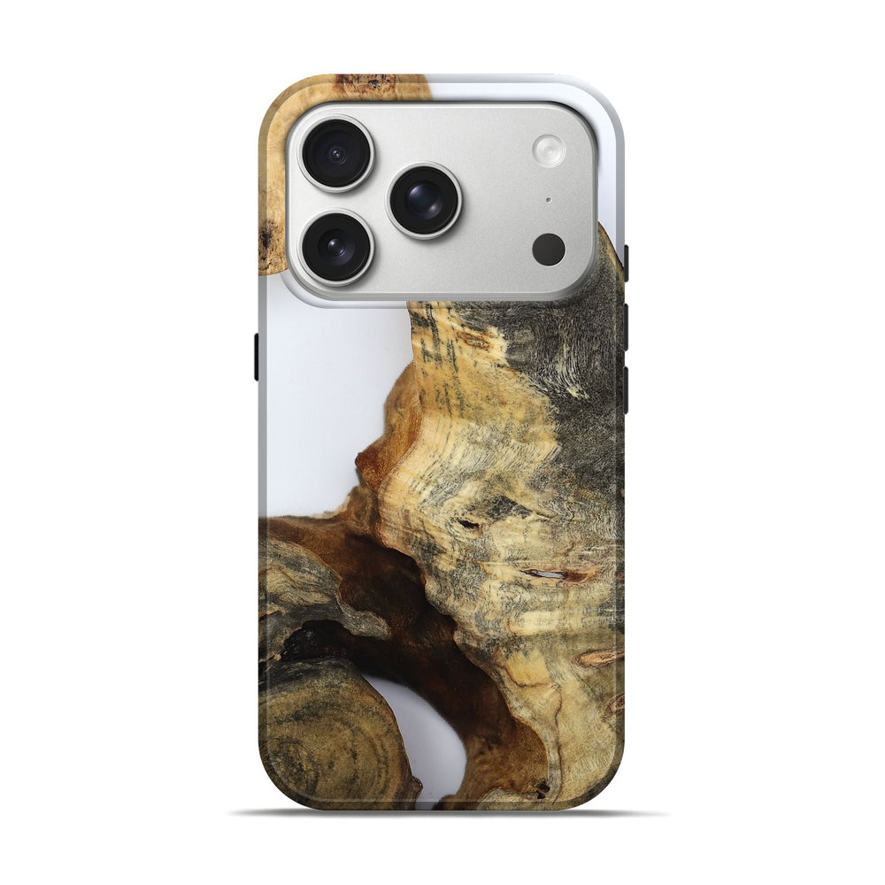 Our Live Edge cases are made from an amazing combination of stabilized wood burl and colored resin. Our stabilization process hardens the wood to protect against cracks and breaks. We do every step of the process at our shop in Northern Indiana. Perfectly fits the iPhone 17 Pro.