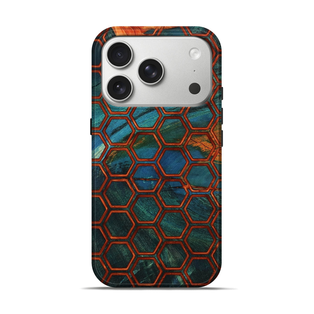 Our Live Edge cases are made from an amazing combination of stabilized wood burl and colored resin. Our stabilization process hardens the wood to protect against cracks and breaks. We do every step of the process at our shop in Northern Indiana. Perfectly fits the iPhone 17 Pro.
