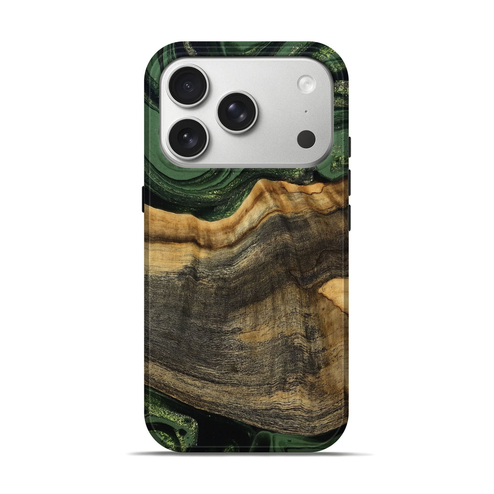 Our Live Edge cases are made from an amazing combination of stabilized wood burl and colored resin. Our stabilization process hardens the wood to protect against cracks and breaks. We do every step of the process at our shop in Northern Indiana. Perfectly fits the iPhone 17 Pro.