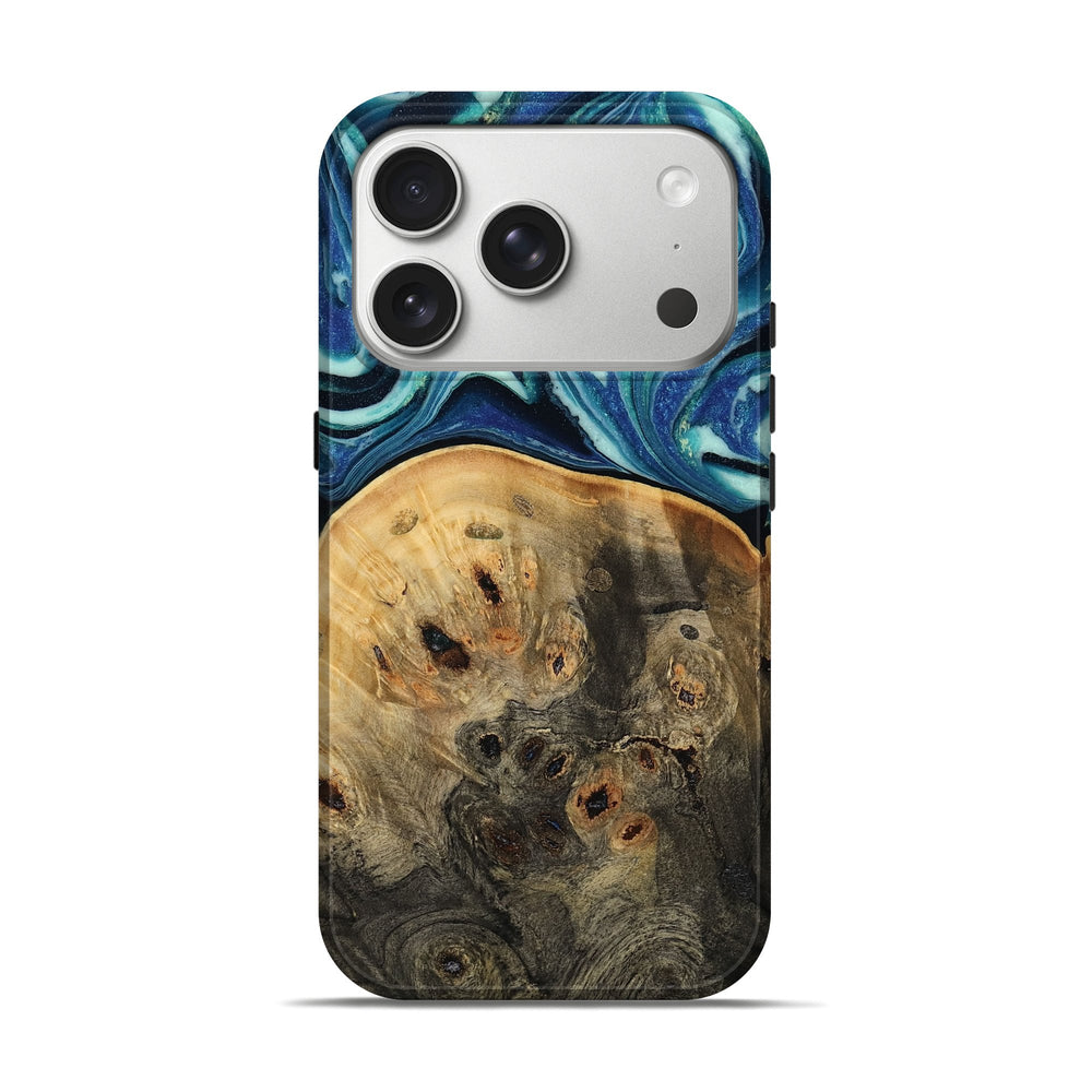 Our Live Edge cases are made from an amazing combination of stabilized wood burl and colored resin. Our stabilization process hardens the wood to protect against cracks and breaks. We do every step of the process at our shop in Northern Indiana. Perfectly fits the iPhone 17 Pro.