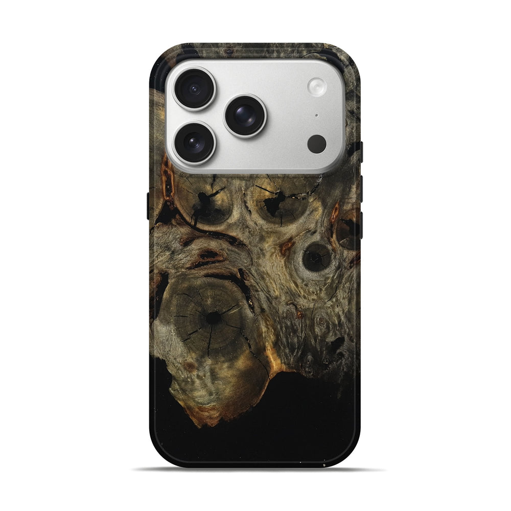 Our Live Edge cases are made from an amazing combination of stabilized wood burl and colored resin. Our stabilization process hardens the wood to protect against cracks and breaks. We do every step of the process at our shop in Northern Indiana. Perfectly fits the iPhone 17 Pro.