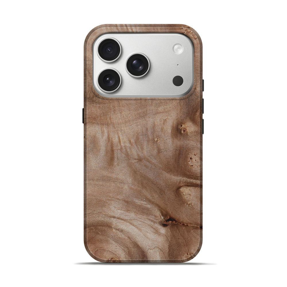 Our Live Edge cases are made from an amazing combination of stabilized wood burl and colored resin. Our stabilization process hardens the wood to protect against cracks and breaks. We do every step of the process at our shop in Northern Indiana. Perfectly fits the iPhone 17 Pro.