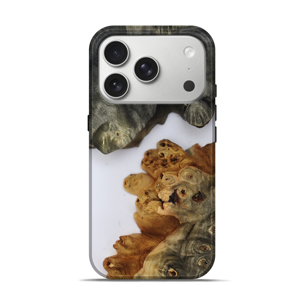 Our Live Edge cases are made from an amazing combination of stabilized wood burl and colored resin. Our stabilization process hardens the wood to protect against cracks and breaks. We do every step of the process at our shop in Northern Indiana. Perfectly fits the iPhone 17 Pro.