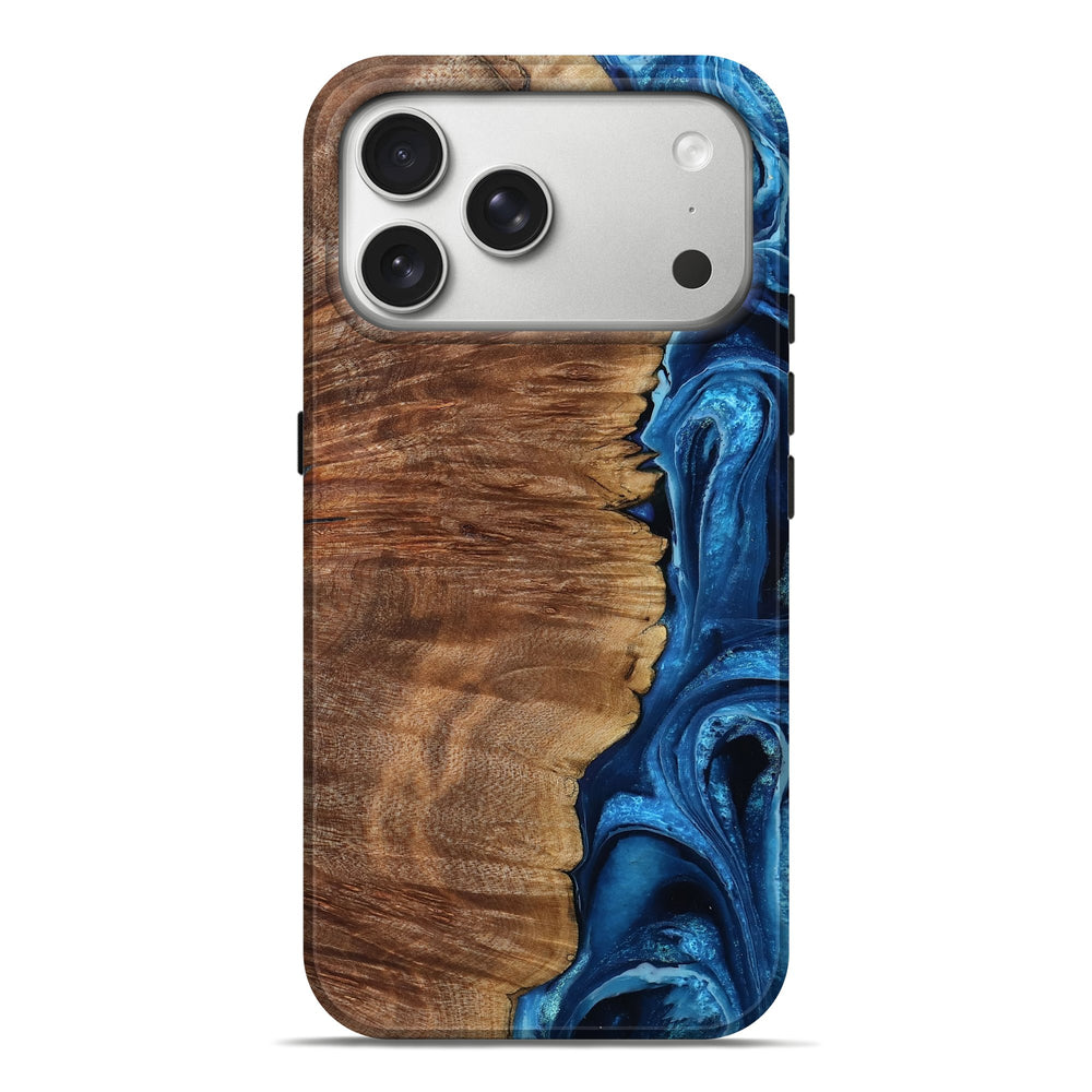 Our Live Edge cases are made from an amazing combination of stabilized wood burl and colored resin. Our stabilization process hardens the wood to protect against cracks and breaks. We do every step of the process at our shop in Northern Indiana. Perfectly fits the iPhone 17 Pro Max.