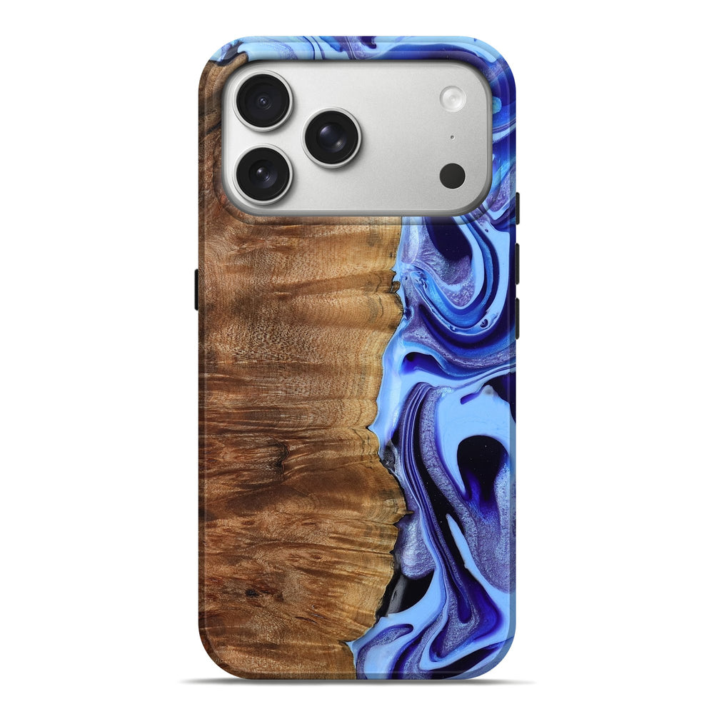 Our Live Edge cases are made from an amazing combination of stabilized wood burl and colored resin. Our stabilization process hardens the wood to protect against cracks and breaks. We do every step of the process at our shop in Northern Indiana. Perfectly fits the iPhone 17 Pro Max.