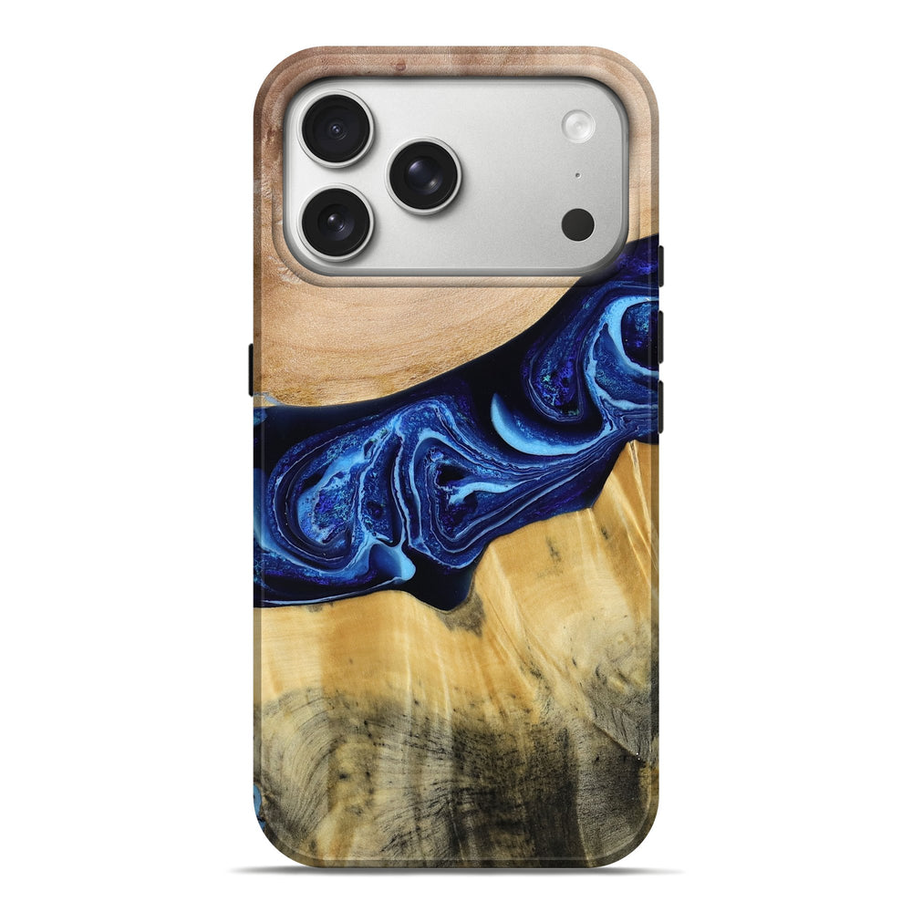 Our Live Edge cases are made from an amazing combination of stabilized wood burl and colored resin. Our stabilization process hardens the wood to protect against cracks and breaks. We do every step of the process at our shop in Northern Indiana. Perfectly fits the iPhone 17 Pro Max.