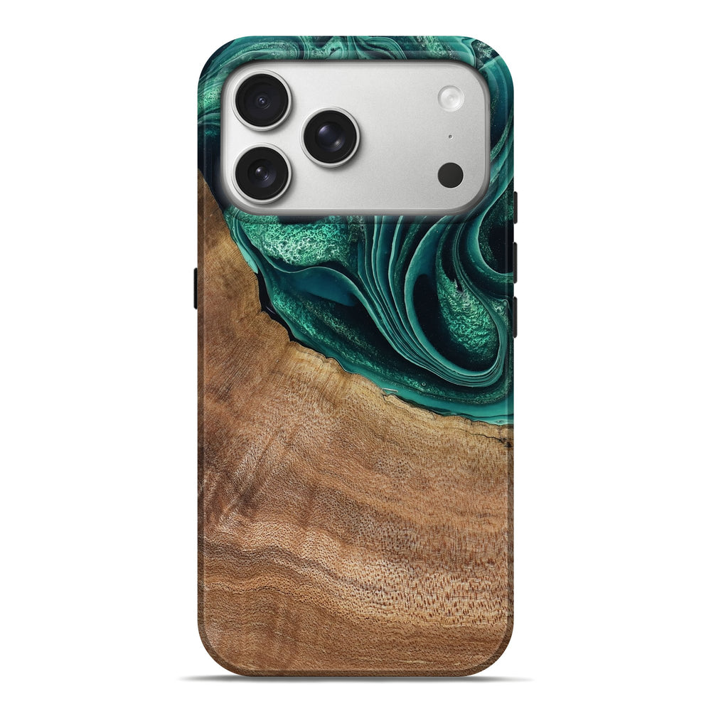 Our Live Edge cases are made from an amazing combination of stabilized wood burl and colored resin. Our stabilization process hardens the wood to protect against cracks and breaks. We do every step of the process at our shop in Northern Indiana. Perfectly fits the iPhone 17 Pro Max.