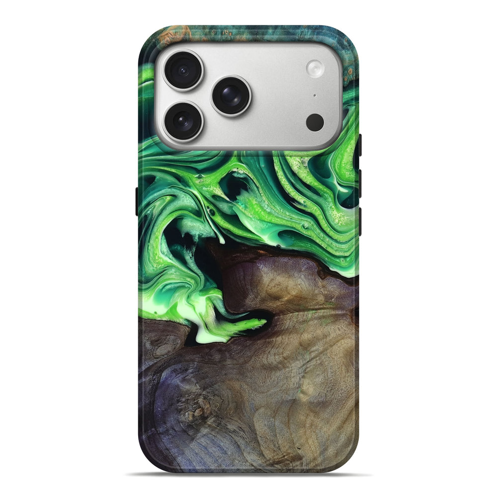 Our Live Edge cases are made from an amazing combination of stabilized wood burl and colored resin. Our stabilization process hardens the wood to protect against cracks and breaks. We do every step of the process at our shop in Northern Indiana. Perfectly fits the iPhone 17 Pro Max.