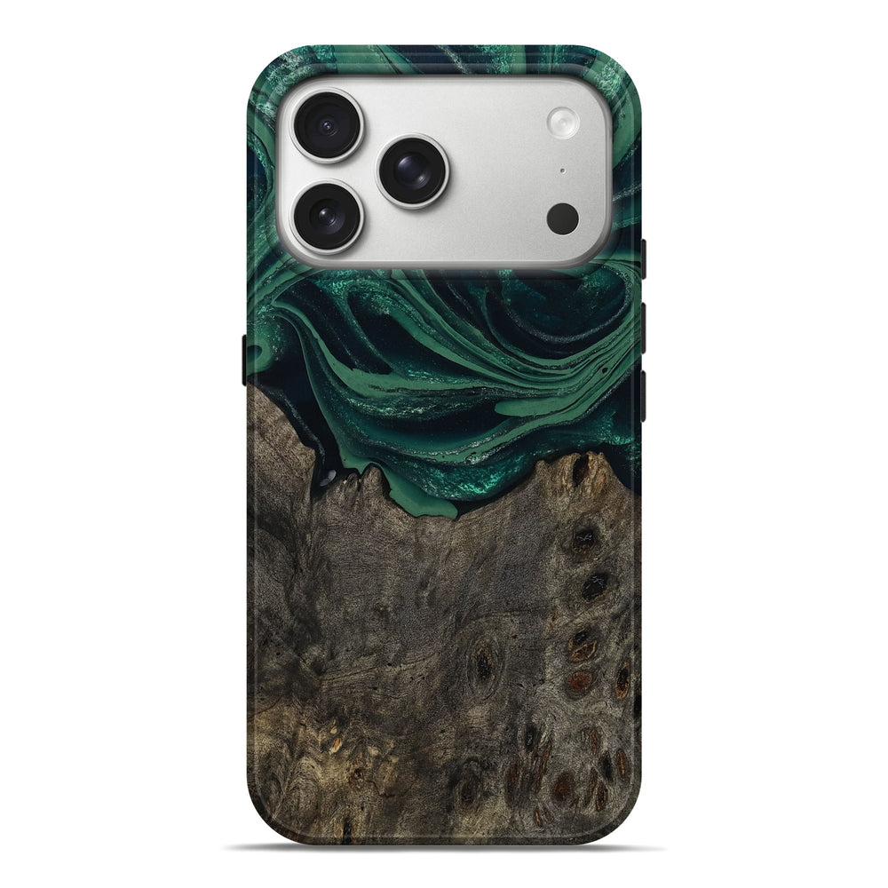 Our Live Edge cases are made from an amazing combination of stabilized wood burl and colored resin. Our stabilization process hardens the wood to protect against cracks and breaks. We do every step of the process at our shop in Northern Indiana. Perfectly fits the iPhone 17 Pro Max.