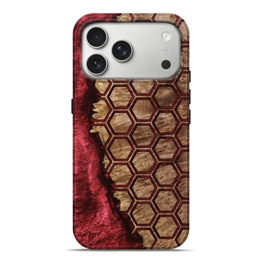 Our Live Edge cases are made from an amazing combination of stabilized wood burl and colored resin. Our stabilization process hardens the wood to protect against cracks and breaks. We do every step of the process at our shop in Northern Indiana. Perfectly fits the iPhone 17 Pro Max.