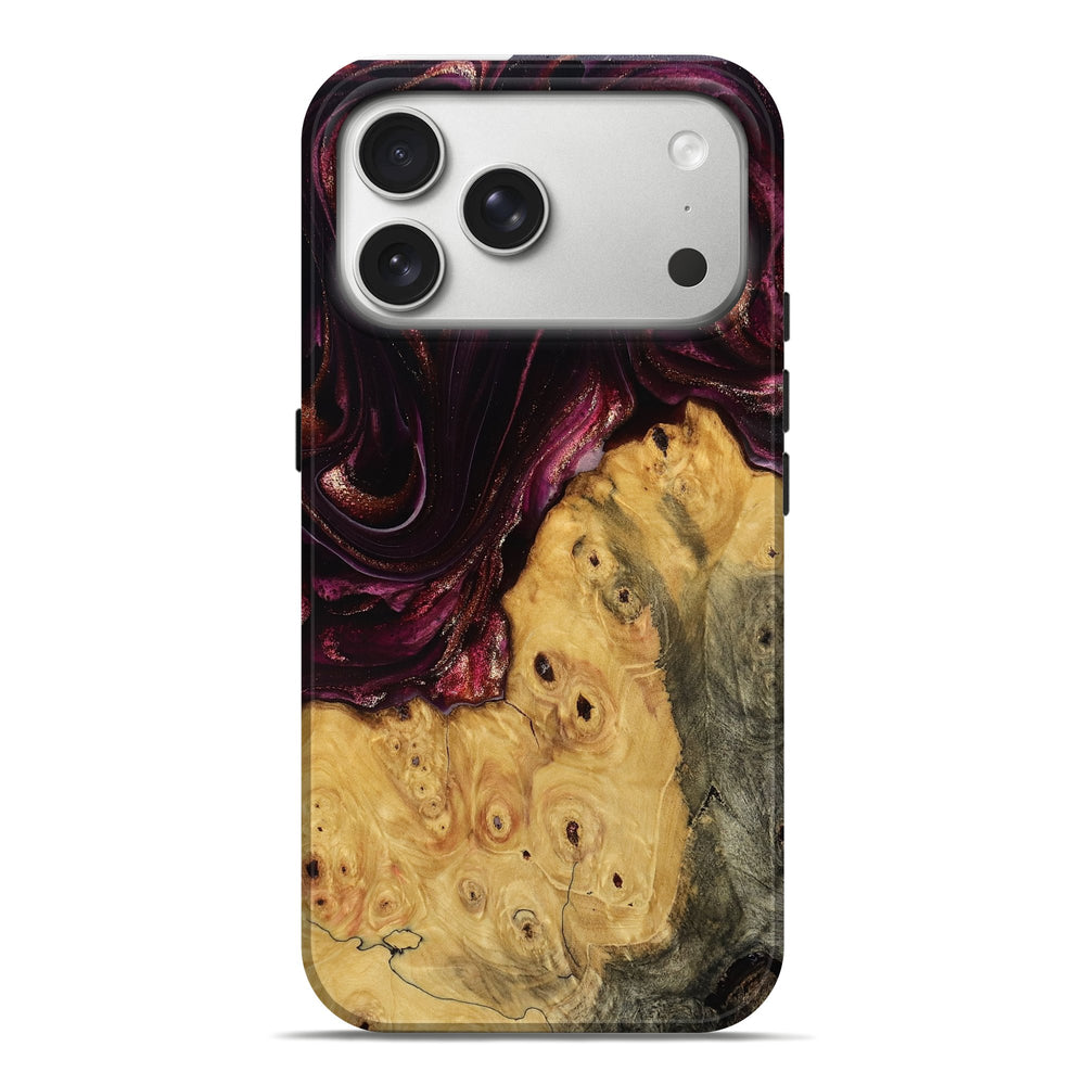 Our Live Edge cases are made from an amazing combination of stabilized wood burl and colored resin. Our stabilization process hardens the wood to protect against cracks and breaks. We do every step of the process at our shop in Northern Indiana. Perfectly fits the iPhone 17 Pro Max.