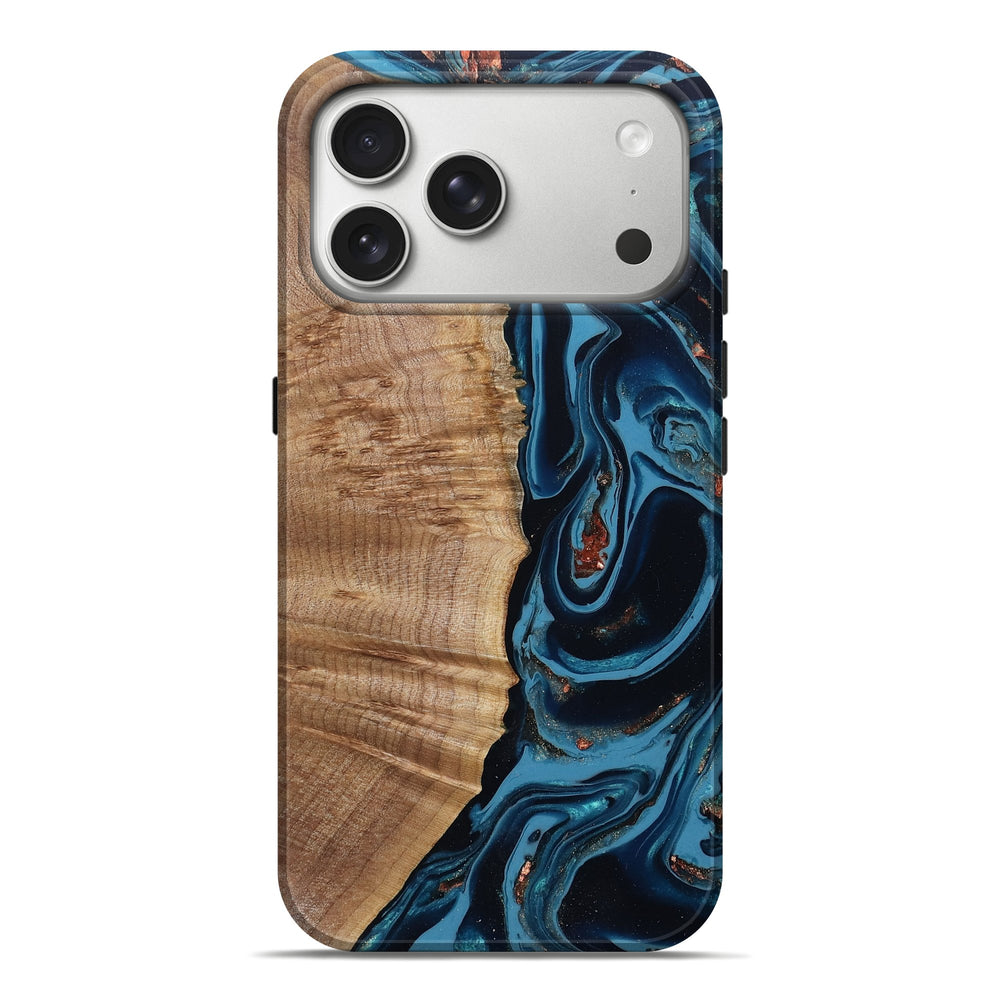 Our Live Edge cases are made from an amazing combination of stabilized wood burl and colored resin. Our stabilization process hardens the wood to protect against cracks and breaks. We do every step of the process at our shop in Northern Indiana. Perfectly fits the iPhone 17 Pro Max.