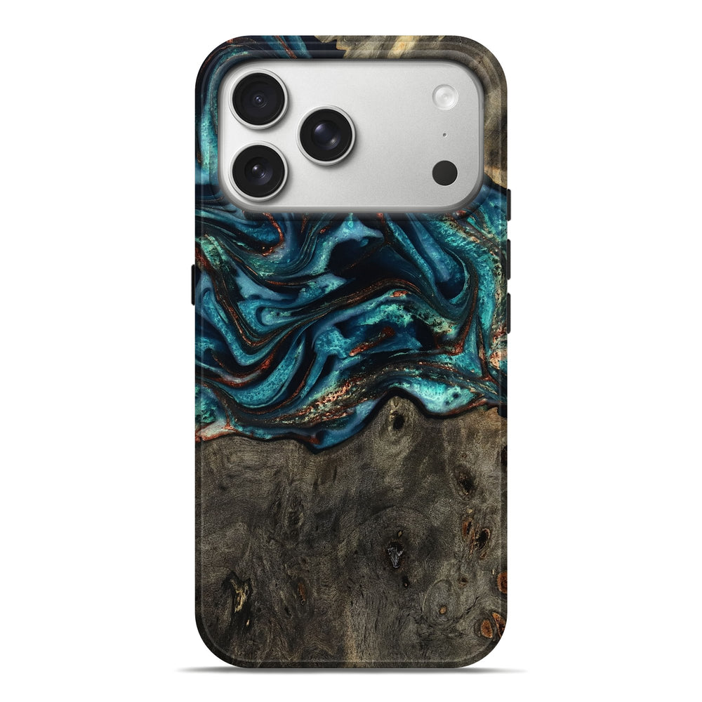 Our Live Edge cases are made from an amazing combination of stabilized wood burl and colored resin. Our stabilization process hardens the wood to protect against cracks and breaks. We do every step of the process at our shop in Northern Indiana. Perfectly fits the iPhone 17 Pro Max.
