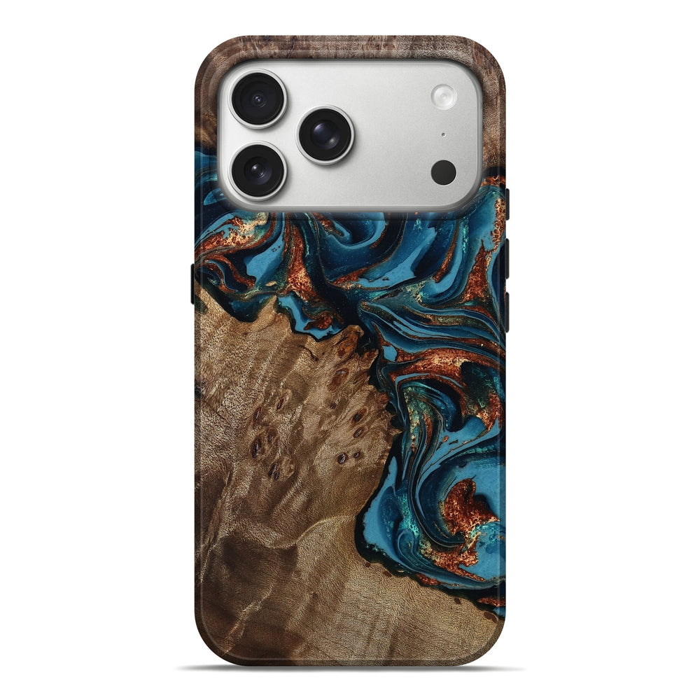 Our Live Edge cases are made from an amazing combination of stabilized wood burl and colored resin. Our stabilization process hardens the wood to protect against cracks and breaks. We do every step of the process at our shop in Northern Indiana. Perfectly fits the iPhone 17 Pro Max.