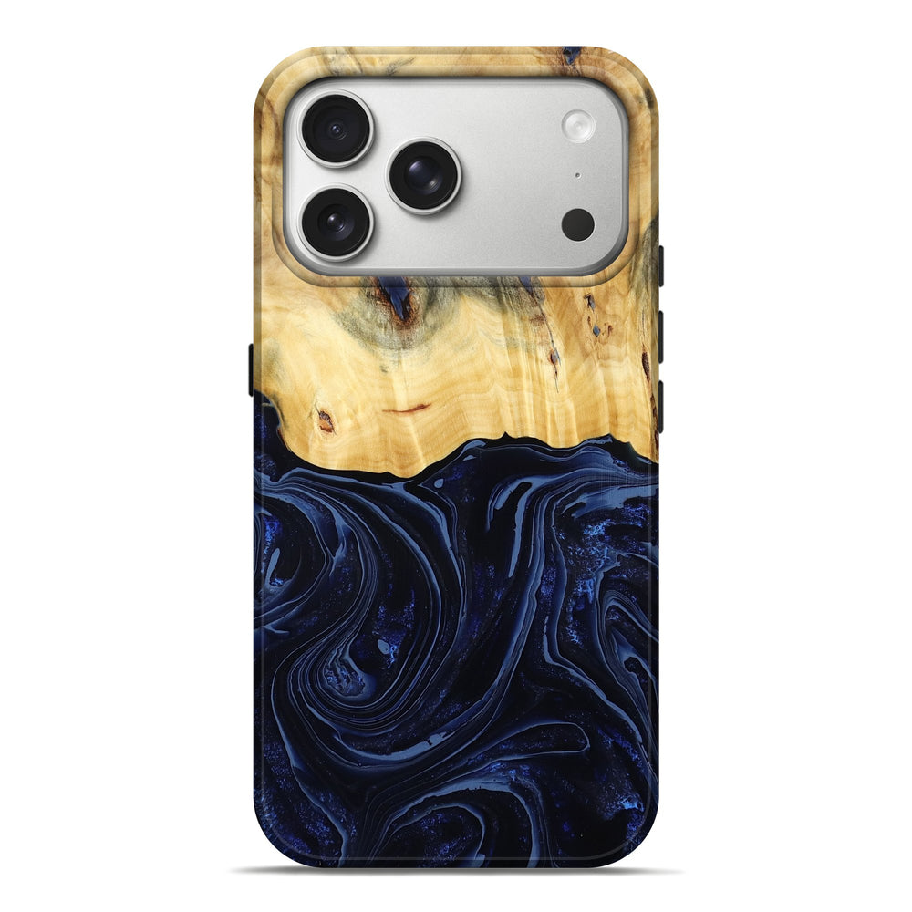 Our Live Edge cases are made from an amazing combination of stabilized wood burl and colored resin. Our stabilization process hardens the wood to protect against cracks and breaks. We do every step of the process at our shop in Northern Indiana. Perfectly fits the iPhone 17 Pro Max.
