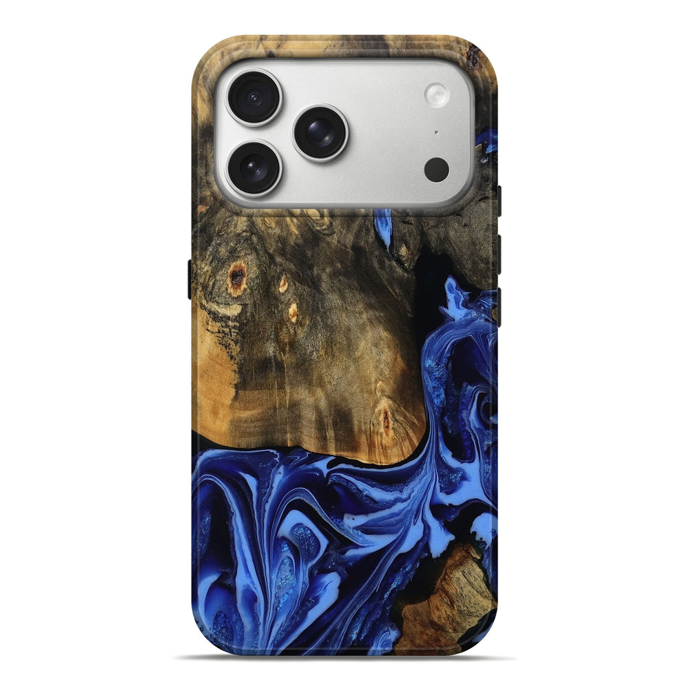 Our Live Edge cases are made from an amazing combination of stabilized wood burl and colored resin. Our stabilization process hardens the wood to protect against cracks and breaks. We do every step of the process at our shop in Northern Indiana. Perfectly fits the iPhone 17 Pro Max.