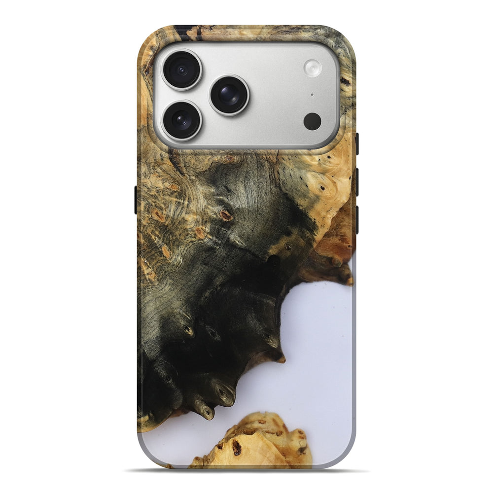 Our Live Edge cases are made from an amazing combination of stabilized wood burl and colored resin. Our stabilization process hardens the wood to protect against cracks and breaks. We do every step of the process at our shop in Northern Indiana. Perfectly fits the iPhone 17 Pro Max.
