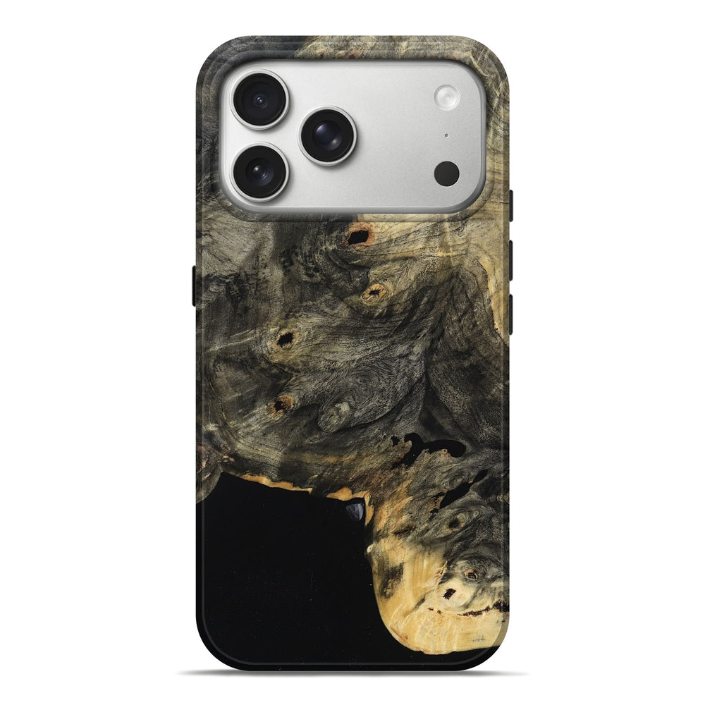 Our Live Edge cases are made from an amazing combination of stabilized wood burl and colored resin. Our stabilization process hardens the wood to protect against cracks and breaks. We do every step of the process at our shop in Northern Indiana. Perfectly fits the iPhone 17 Pro Max.