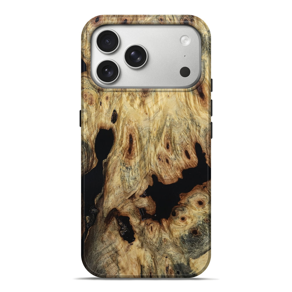 Our Live Edge cases are made from an amazing combination of stabilized wood burl and colored resin. Our stabilization process hardens the wood to protect against cracks and breaks. We do every step of the process at our shop in Northern Indiana. Perfectly fits the iPhone 17 Pro Max.