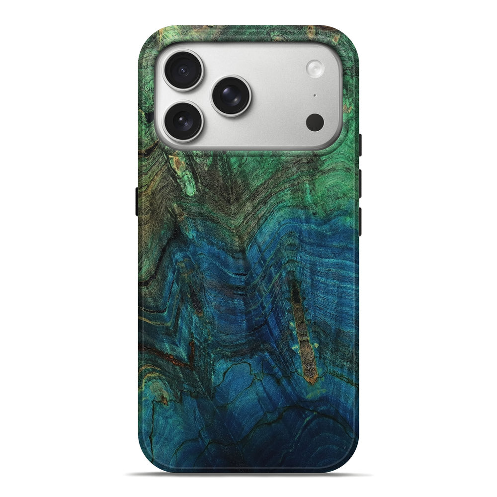 Our Live Edge cases are made from an amazing combination of stabilized wood burl and colored resin. Our stabilization process hardens the wood to protect against cracks and breaks. We do every step of the process at our shop in Northern Indiana. Perfectly fits the iPhone 17 Pro Max.