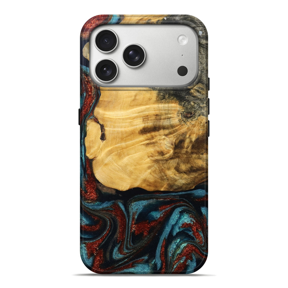 Our Live Edge cases are made from an amazing combination of stabilized wood burl and colored resin. Our stabilization process hardens the wood to protect against cracks and breaks. We do every step of the process at our shop in Northern Indiana. Perfectly fits the iPhone 17 Pro Max.