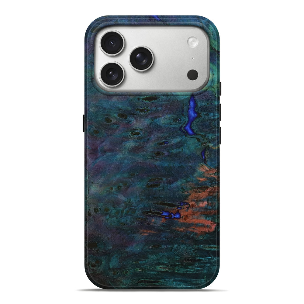 Our Live Edge cases are made from an amazing combination of stabilized wood burl and colored resin. Our stabilization process hardens the wood to protect against cracks and breaks. We do every step of the process at our shop in Northern Indiana. Perfectly fits the iPhone 17 Pro Max.