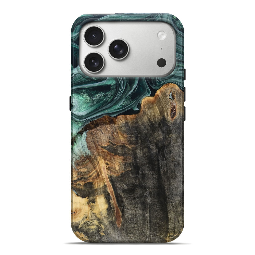 Our Live Edge cases are made from an amazing combination of stabilized wood burl and colored resin. Our stabilization process hardens the wood to protect against cracks and breaks. We do every step of the process at our shop in Northern Indiana. Perfectly fits the iPhone 17 Pro Max.
