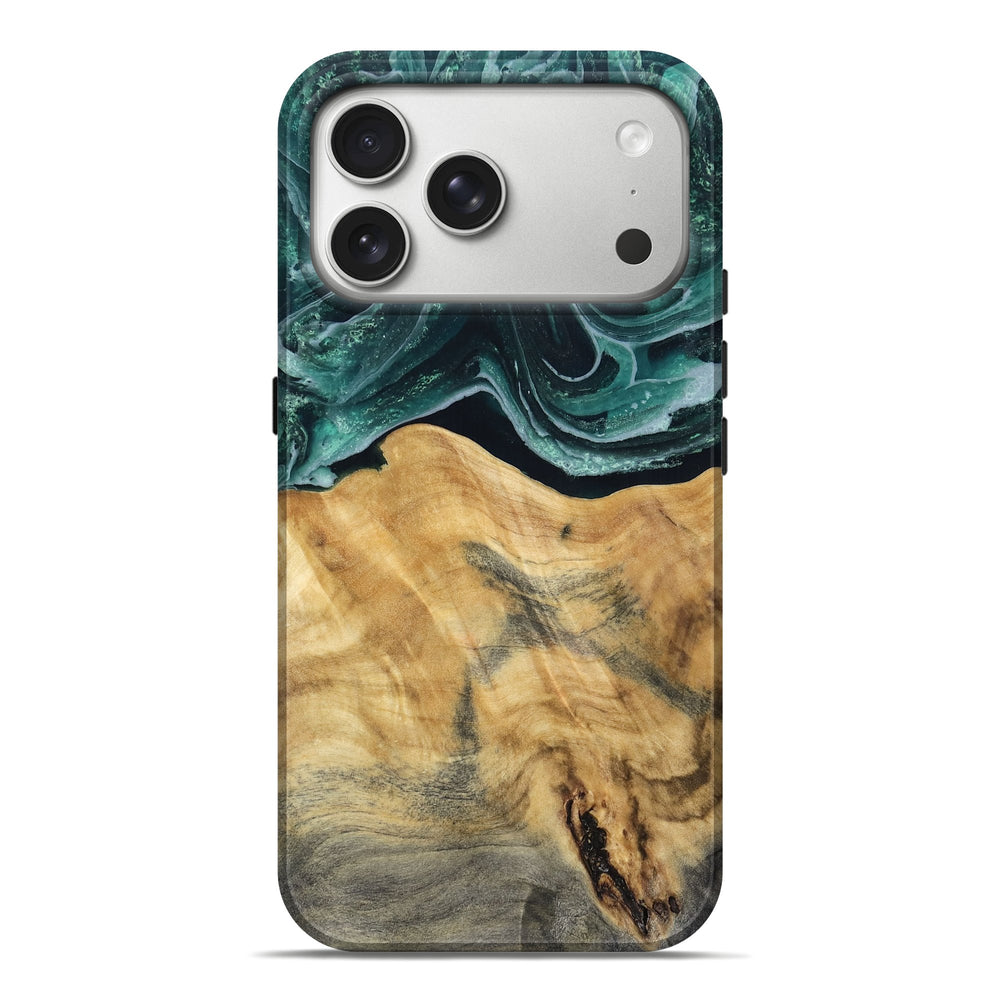 Our Live Edge cases are made from an amazing combination of stabilized wood burl and colored resin. Our stabilization process hardens the wood to protect against cracks and breaks. We do every step of the process at our shop in Northern Indiana. Perfectly fits the iPhone 17 Pro Max.