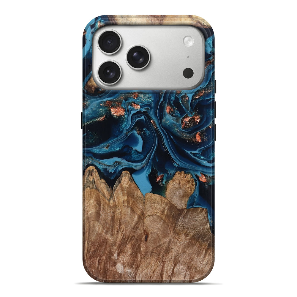 Our Live Edge cases are made from an amazing combination of stabilized wood burl and colored resin. Our stabilization process hardens the wood to protect against cracks and breaks. We do every step of the process at our shop in Northern Indiana. Perfectly fits the iPhone 17 Pro Max.