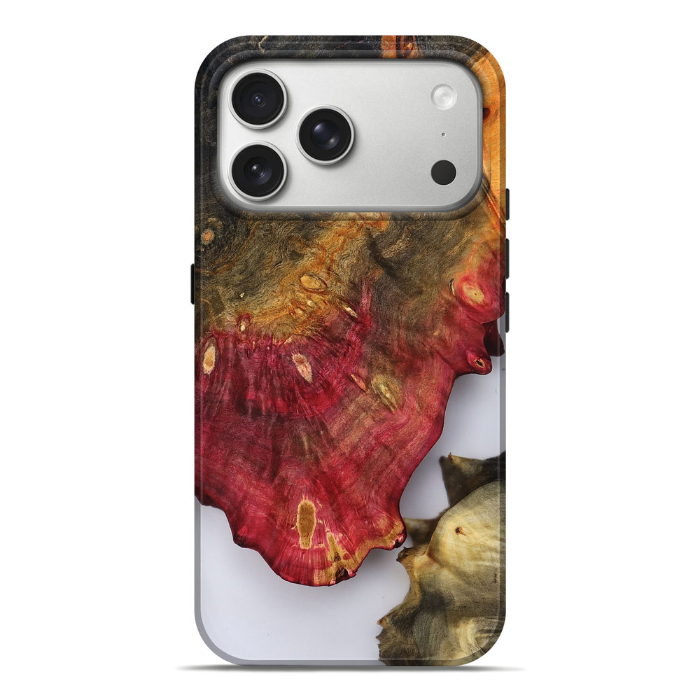 Our Live Edge cases are made from an amazing combination of stabilized wood burl and colored resin. Our stabilization process hardens the wood to protect against cracks and breaks. We do every step of the process at our shop in Northern Indiana. Perfectly fits the iPhone 17 Pro Max.