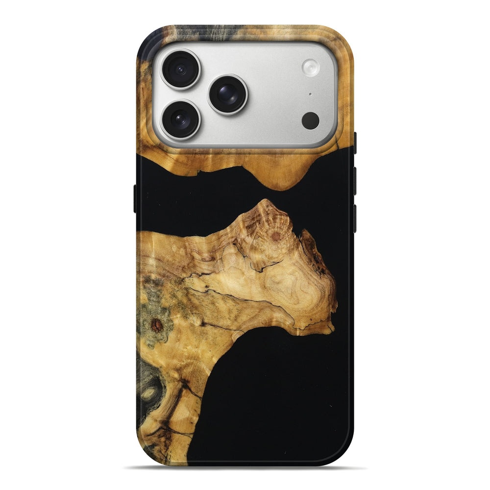Our Live Edge cases are made from an amazing combination of stabilized wood burl and colored resin. Our stabilization process hardens the wood to protect against cracks and breaks. We do every step of the process at our shop in Northern Indiana. Perfectly fits the iPhone 17 Pro Max.