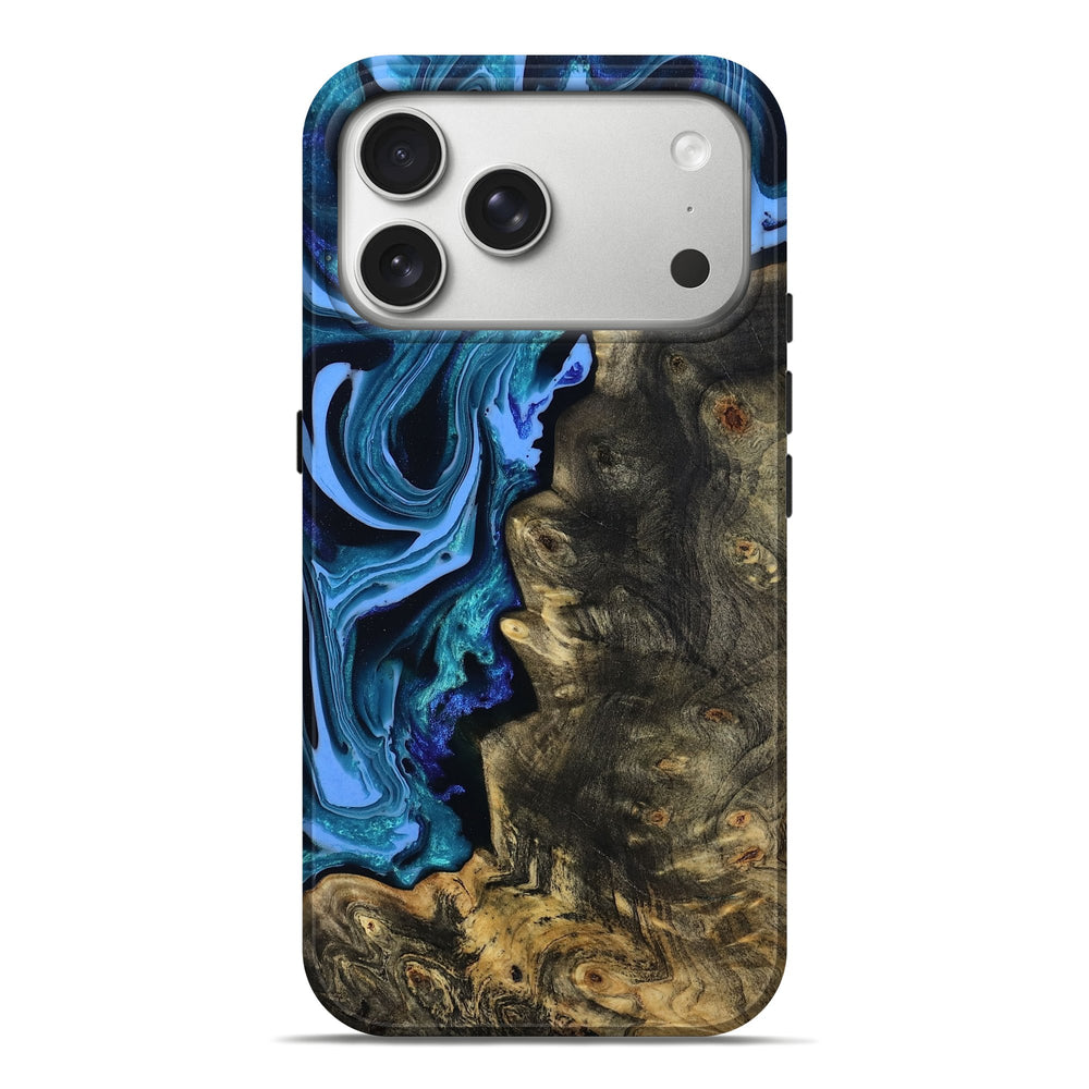 Our Live Edge cases are made from an amazing combination of stabilized wood burl and colored resin. Our stabilization process hardens the wood to protect against cracks and breaks. We do every step of the process at our shop in Northern Indiana. Perfectly fits the iPhone 17 Pro Max.
