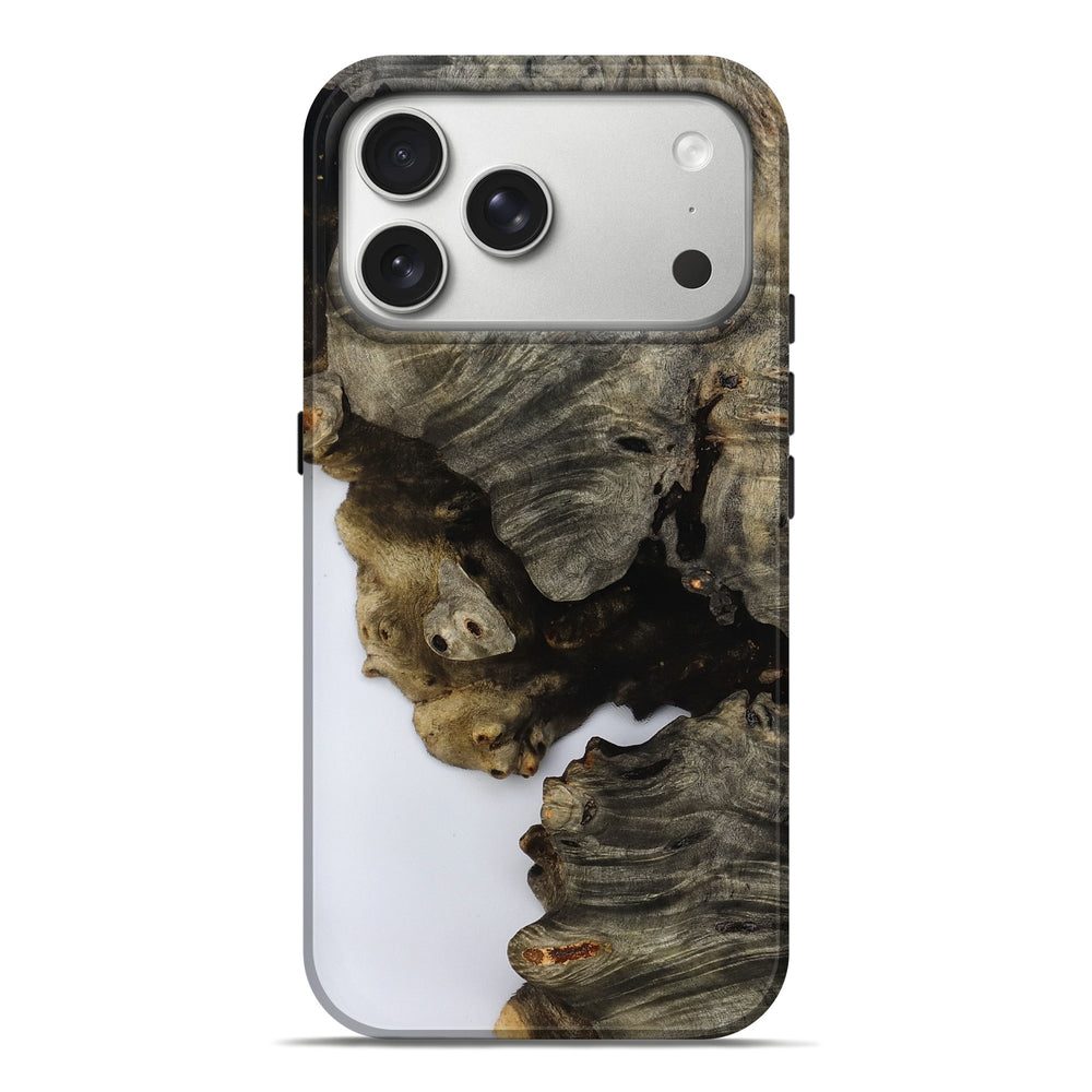 Our Live Edge cases are made from an amazing combination of stabilized wood burl and colored resin. Our stabilization process hardens the wood to protect against cracks and breaks. We do every step of the process at our shop in Northern Indiana. Perfectly fits the iPhone 17 Pro Max.