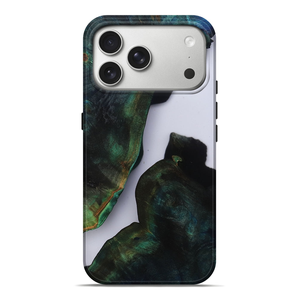 Our Live Edge cases are made from an amazing combination of stabilized wood burl and colored resin. Our stabilization process hardens the wood to protect against cracks and breaks. We do every step of the process at our shop in Northern Indiana. Perfectly fits the iPhone 17 Pro Max.