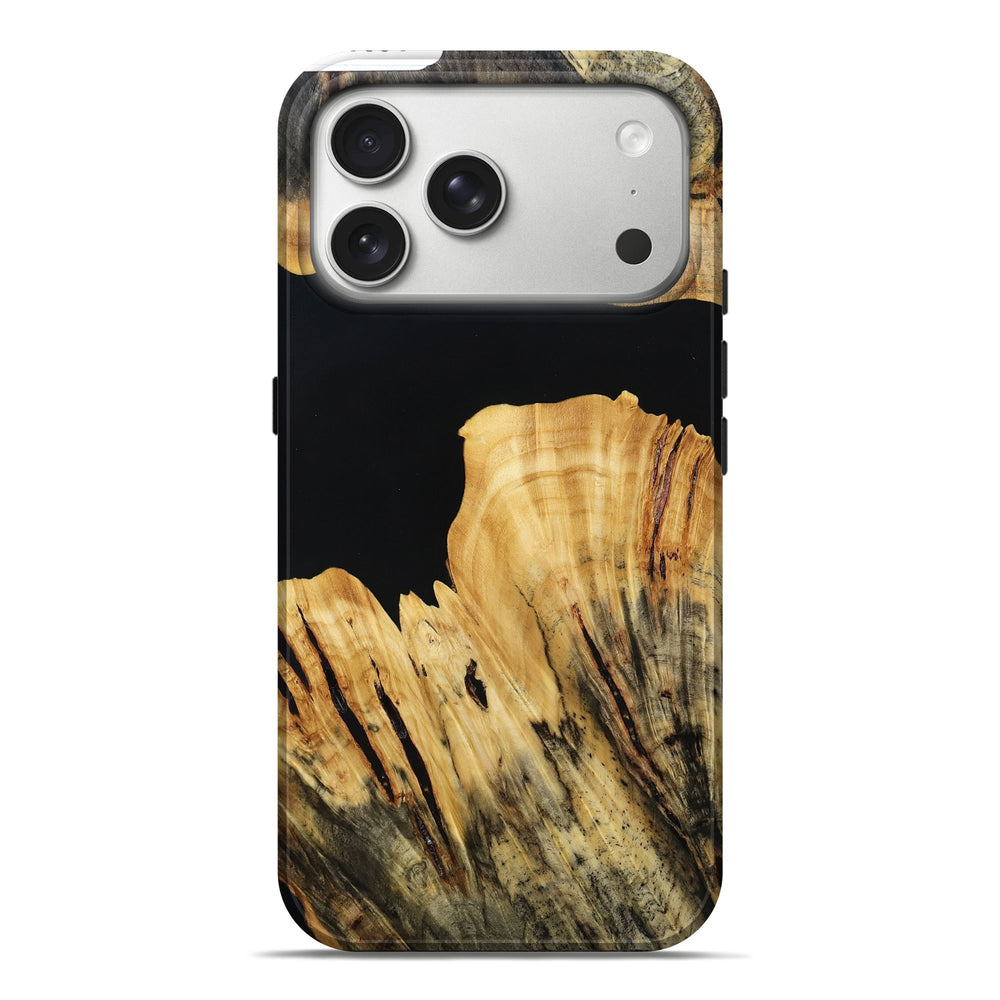 Our Live Edge cases are made from an amazing combination of stabilized wood burl and colored resin. Our stabilization process hardens the wood to protect against cracks and breaks. We do every step of the process at our shop in Northern Indiana. Perfectly fits the iPhone 17 Pro Max.
