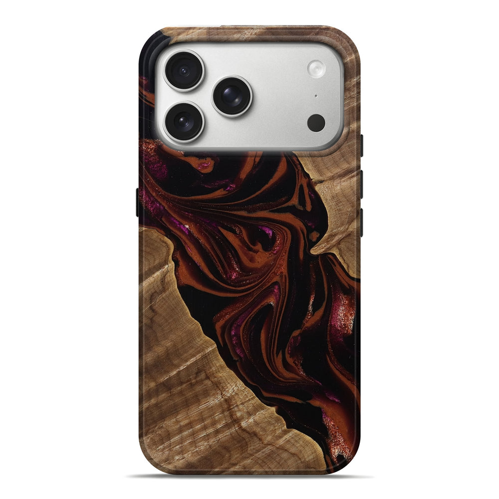 Our Live Edge cases are made from an amazing combination of stabilized wood burl and colored resin. Our stabilization process hardens the wood to protect against cracks and breaks. We do every step of the process at our shop in Northern Indiana. Perfectly fits the iPhone 17 Pro Max.